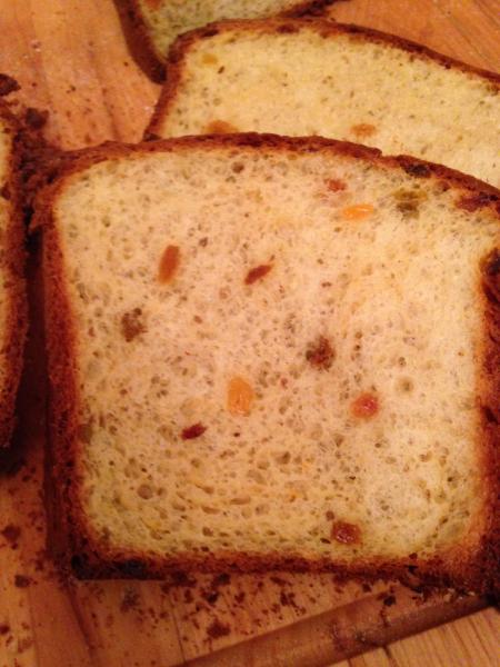 corrupt my mixed fruits; raisins and cranberries, with some home made limoncello which went well with the lemon zest and Italian flavor of this fine bread. i was worries the SD would throw it off and that the a huge amount of anise would be too much but both works out pretty well. The older recipe has lard in it so you know it is an original and delicious :-)