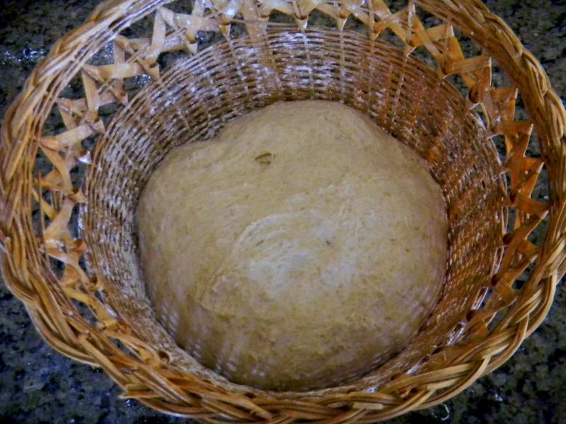 We then shaped the dough and placed it the rice floured basket but forgot to rice flour the boule as we always do for a new basket so it can’t stick. After a short 2 hour proof, It was 85 F in the kitchen today, the dough had doubled on the counter and ready to be baked.