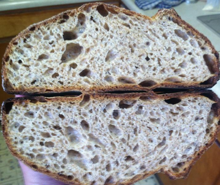 bread.  Hope it tastes as good as it looks and the inside is holey to.  So is this a 50% wholegrain?   Can't tell from the recipe.  Wish I could figure out my problem bakes so easily :-)
