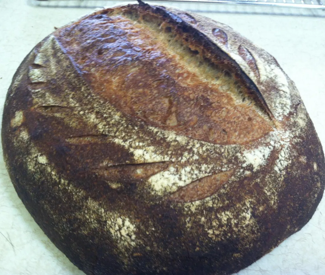 Nice dark crust and pretty scoring as always.