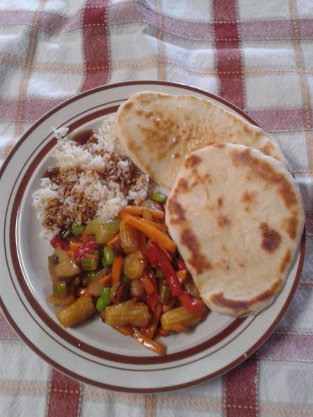and vegetable stirfry... I brushed garlic butter on the naan on both sides as I removed it from the grill.