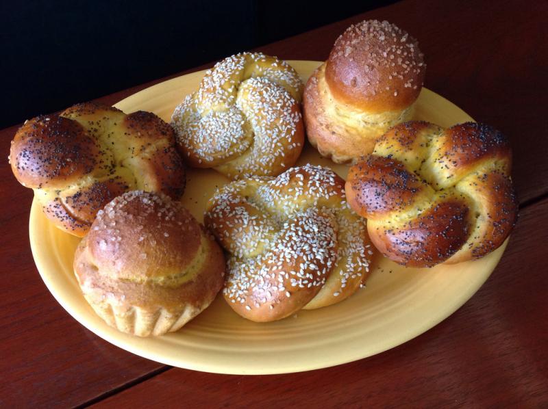 on a light yellow plate and the wood table. It not only looks good, the rolls look scrumptious. :)