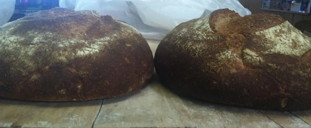 Main pic is one that was flat on left and one of the few better loaves on the right.