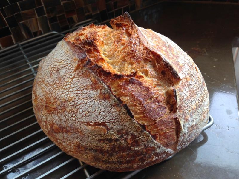 Next I tried out Song Of the Baker’s Multigrain Levain formula, after seeing his beautiful results on this site. It was a fun experiment – my first porridge-type bread. I ended with a few substitutions in the soaker (didn’t have all the various grains needed on hand). The results were delicious and pretty different than my typical country loaf – I had one friend say it was his favorite of my breads so far. I definitely think I will get better at this one with practice, as I didn’t exactly know what I was looking for at each step. The overall flavor was really moist and full, and really makes we want to experiment with even more porridge breaks (Tartine 3?). Thanks again to Song of the Baker for sharing his recipe!