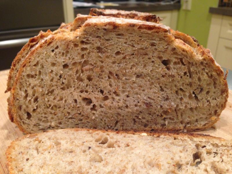 The multigrain loaves were perfect toast bread. I can't remember exactly what ended up in the soaker -- I tried to match the total weight specified in the recipe with what I had on hand, filled in some gaps with more oats and barely I think. It seems like a pretty versatile recipe with respect to the soaker, have you experiments with alternate grains and inclusions?