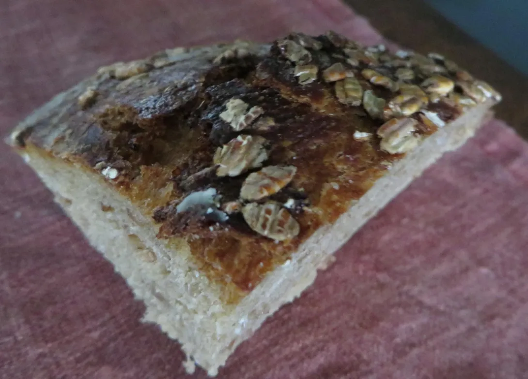 However, the crumb when I cut it that evening was still a bit moist. It's only dried out now, 3 days later. I had followed the directions which are 20 minutes inside a dutch oven at 500 degrees, lower the heat to 450 for another 10 minutes with the lid on, then take off the lid for a final baking period. I stopped after 50 minutes total because the crust was as black as I wanted it to get. (My wife, the same one who does not like me to smoke up the house, thinks burned food causes cancer. She's probably right.)