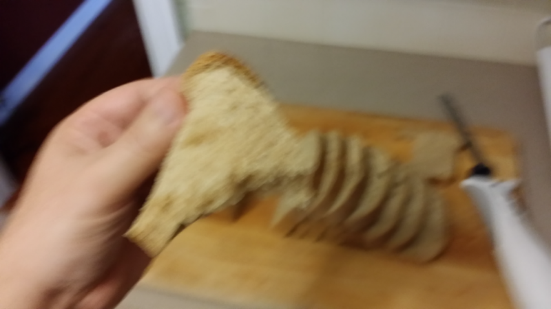 This one was to demonstrate how soft and fluffy the bread is. Notice how it just lays over in my hand. (little blurry, sorry).