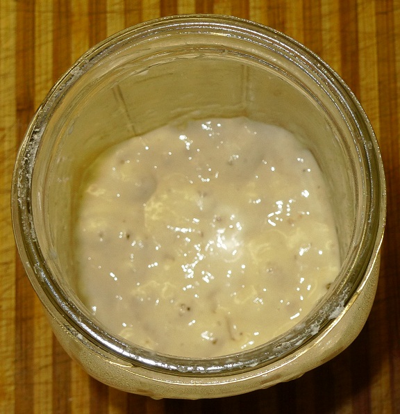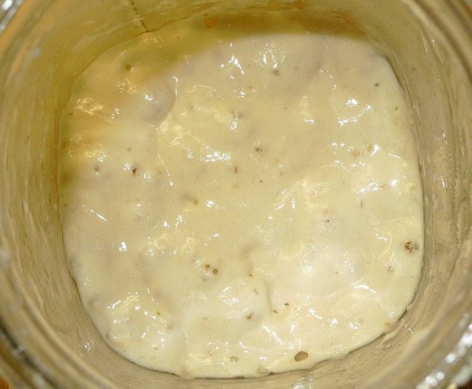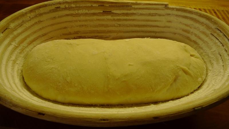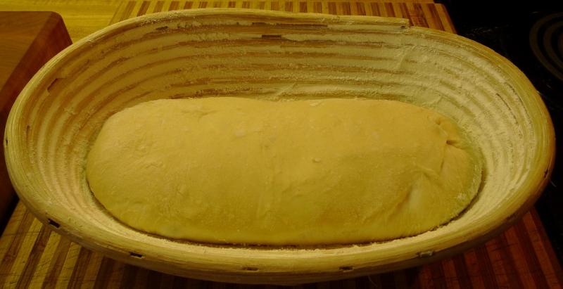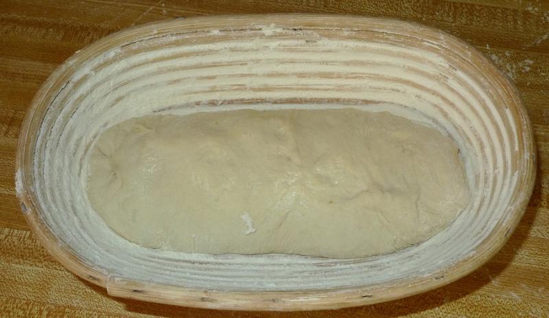 My dough an hour later. Hmmm, this'll be a waiting game and it appears that the banneton could accomodate a heavier dough.