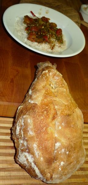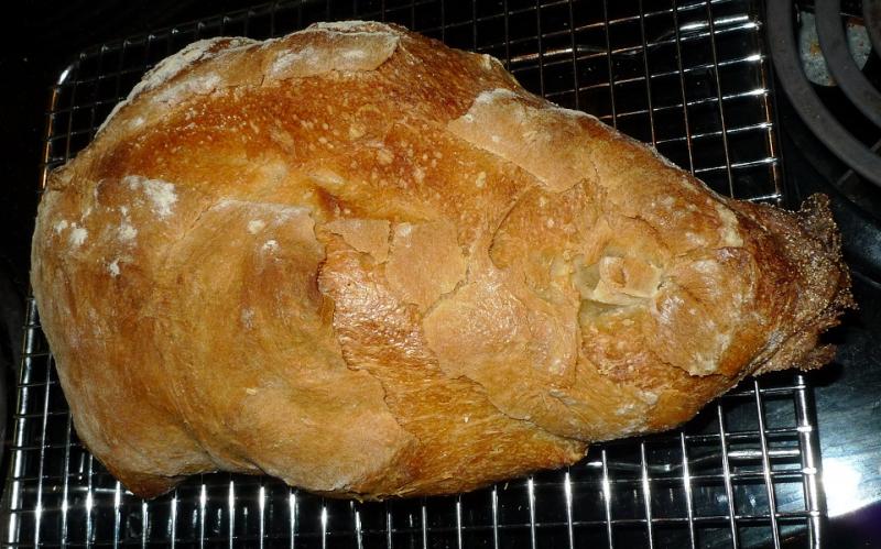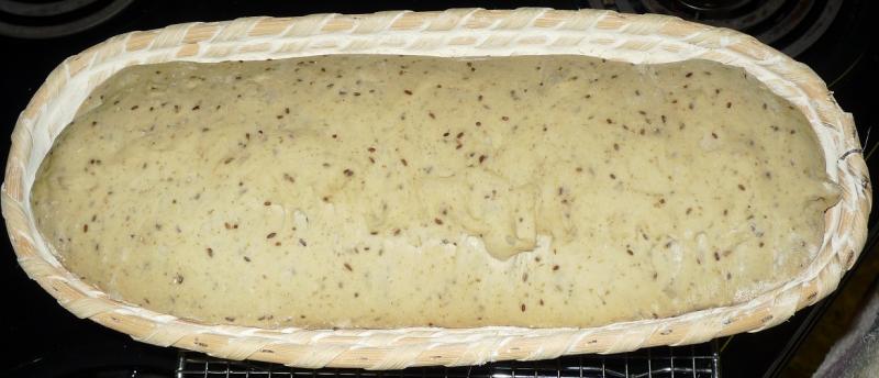 1. The overall shape of the dough appeared okay until the banneton was inverted to place the dough onto the peel. At that point it got torn apart due to adherence to the bottom of the banneton. A vigorous repair job ensued.