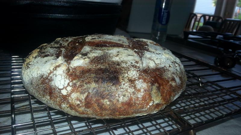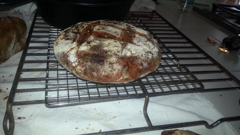 The texture of the crumb reminded me of a combination of the tartine country loaf and a basic white bread recipe.. But leaning more towards the white bread. It was still tasty, 2.5 out of the 4 loaves are already gone (since everyone woke up this morning), which was pretty shocking, but it wasn't exactly what I expected. Overall, I think it wasn't bad for a first attempt.