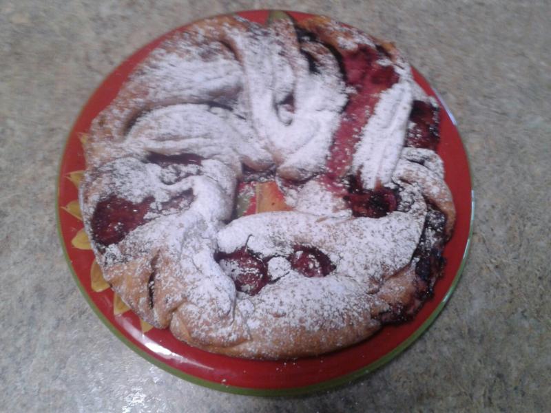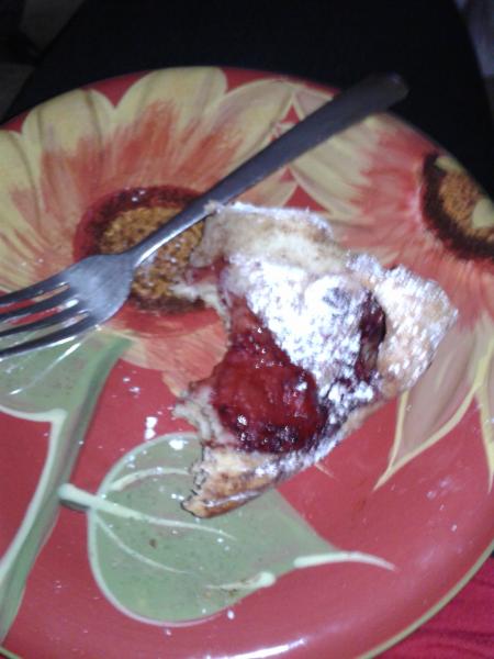 To look at all those steps than to mix up the dough (have to admit that I gave up halfway through and skipped ahead to the recipe) I used a package of frozen mixed berries, should have shown some restraint but I dumped in the leftover after carefully measuring. Not a good idea, too much fruit to enclose in the dough.- the cinnamon with fruit seemed odd, kind of like putting jam on a cinnamon roll. Now there's an idea....
