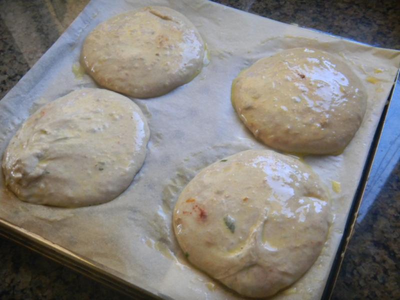 We are having some Italian themed hamburgers tomorrow with some Italian sausage mixed with the beef, some gorgonzola cheese and green onion.  So we needed am Italian themed bun to go with it.