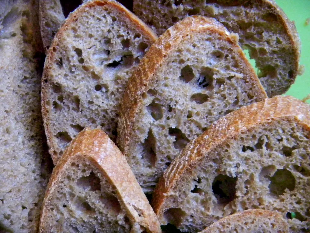 Sure enough the crumb was open, soft, moist and glossy. It also was a beautiful shade of brown not often seen around here except in high whole grain breads. The more spelt than usual really brought out the color. The best part was the taste. This bread tastes great – uniquely so.