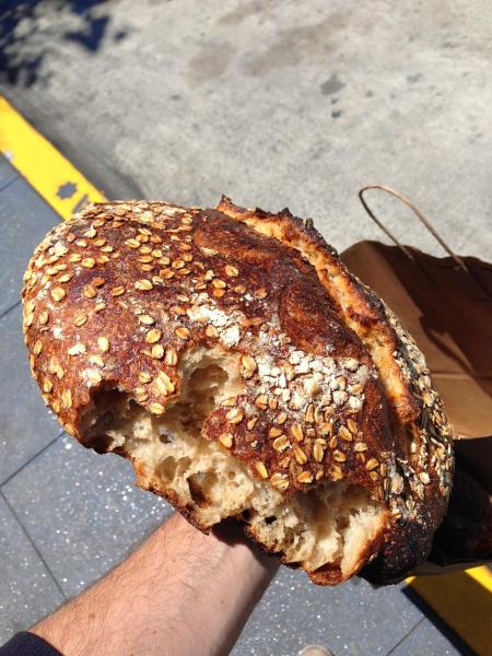 The Oat Porridge bread was a first for me at Tartine, and we cracked into almost immediately, eating as we walked around the city. It has a really lovely, custardy crumb and dense, dark crust. My wife, in particular, love it and asked me to try it soon at home.