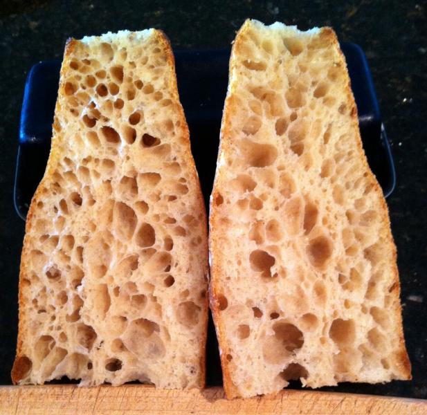My disclosure here is that, as I mentioned earlier with the occasional clunker, the interiors are not always this good. When it "clunks" on the scoring, the chances are pretty good that the interior will not exhibit the open crumb either. The majority of the time - yes, all the time - no!