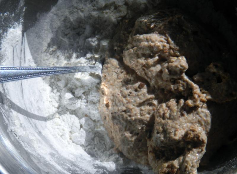 She used the 15% extraction from the whole wheat and whole rye milling to feed the levain and some of the 85% extracted wheat to go along with the AP flour. She also chucked the Götz von Berlichingen altus in the levain too and used the potato boiling water for the liquid in the levain and dough. Lucy won't throw anything away