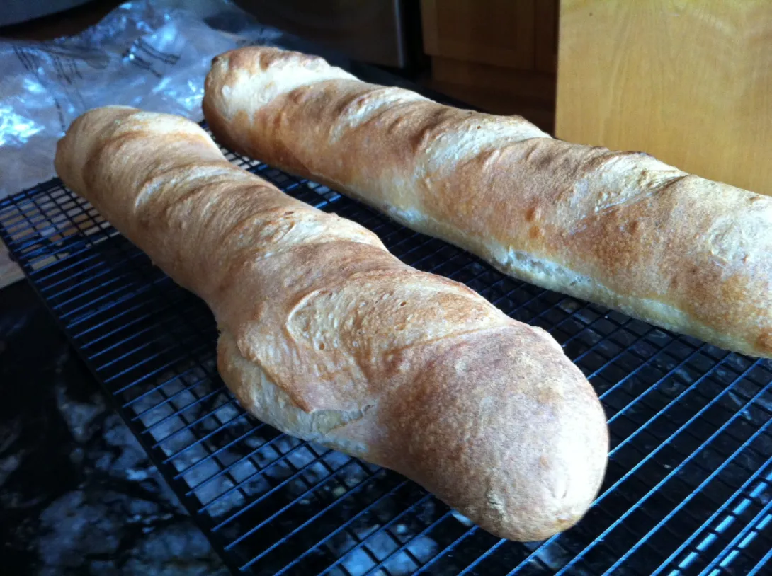 I've made this ciabatta style 77% hydration bread using .004% traditional yeast in a baguette pan about 40 - 50 times and suddenly I get bulging. The seams were well sealed and still obviously on the bottom of the loaves. I slashed the tops for oven spring and don't know what caused the 'bulge'. Can anyone help me understand?