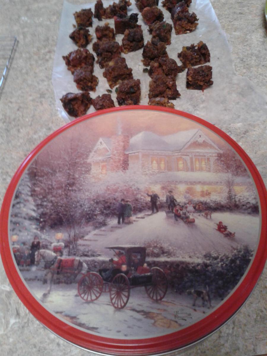 Hi all, yesterday we make our fruitcakes, so we would have plenty of time to snocker them up for the Christmas Dinner. We used a great recipe that we tested when Helen and I surprised Barbra on her birthday almost a whole year ago... we made our yearly fruitcakes there with her in October. This year we started a bit earlier and baked together via cyber/text. Admittedly, in person was more fun!!! But these all came out great by anyone's standards I am sure.