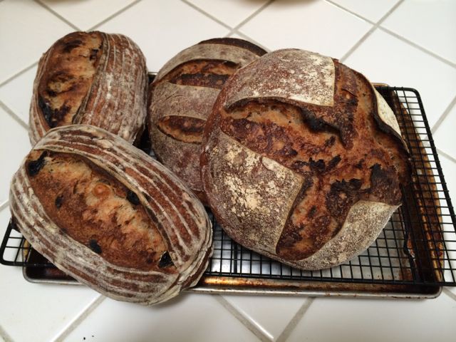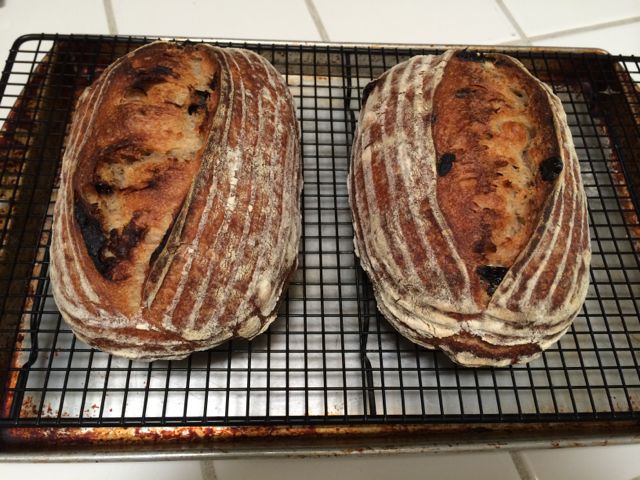 I also made a couple loaves of San Francisco-style Sourdough with dried sour cherries and toasted hazelnuts. I used Forkish's standard levain for both of these breads.