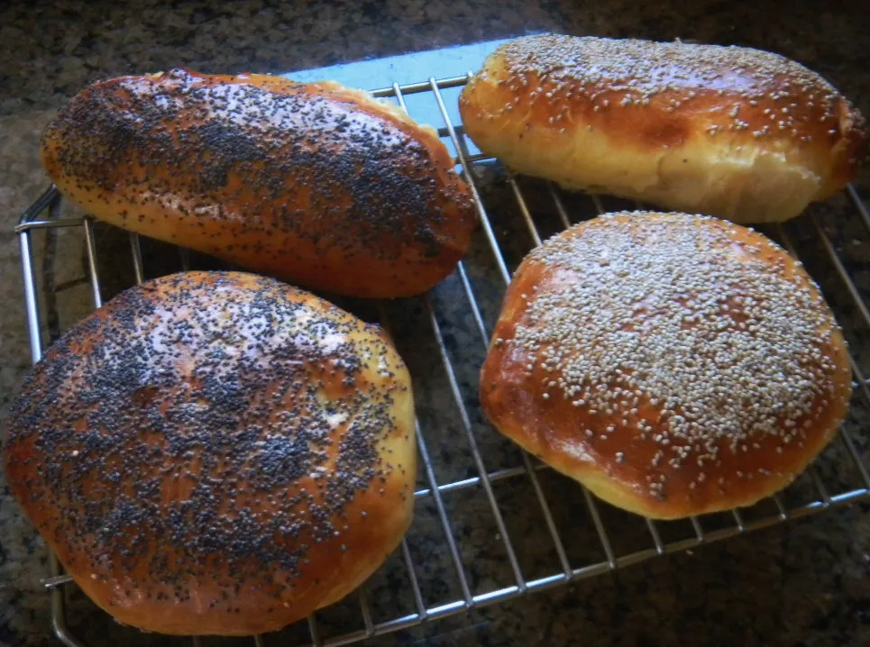 For once we started then early enough in the day to let them properly ferment and proof before egg washing them twice , sprinkling on some poppy seeds netween washings and baking them a 350 F convection for 18 minutes.