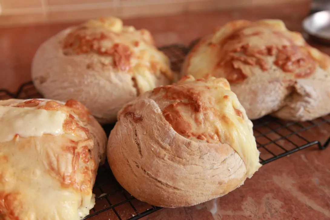 See attached the image of a cheese bread i baked today, the crust is not so smooth as I would want it to be.