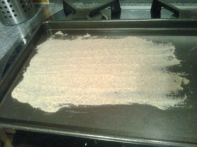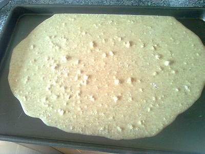 I made a wet mix which had the consistency of a tin of Dulux paint.   I was able to then literally pour this onto the baking sheet and spread it out again.