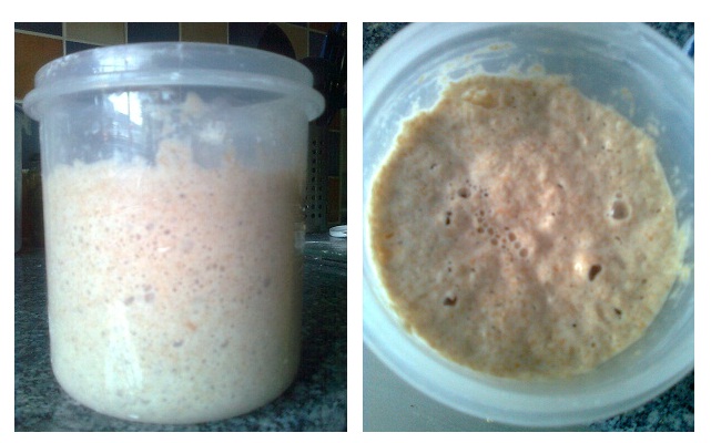 I discarded half the mix, fed again with more white flour and water and spread out on the tray again.