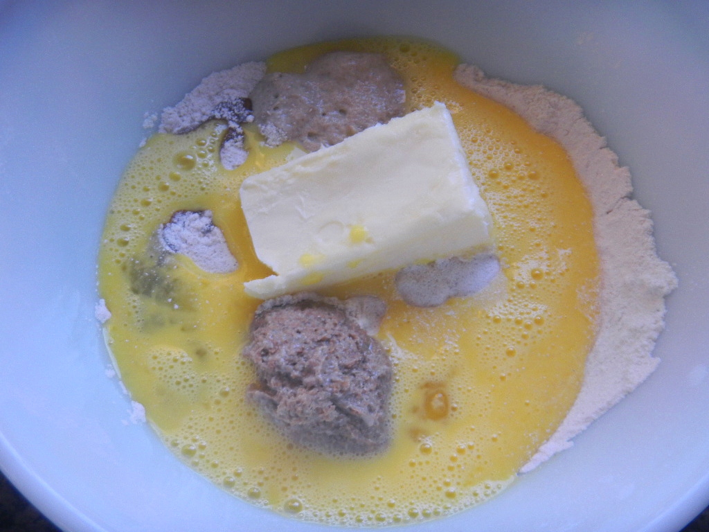 I’m not sure this makes a difference at all though and you could probably just dump the whole mess in at once and mix away. I used a spoon and it wasn’t too difficult. I hate cleaning the mixer and Lucy hates cleaning anything.
