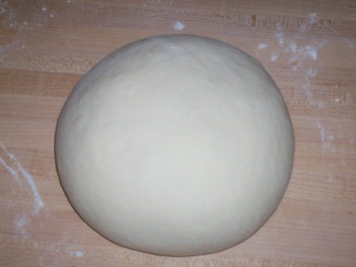 The dough ingredients were then used to break up the preferment, after which all ingredients were machined in a 7 cup food processor for 45 seconds. The fully developed dough was then turned out onto a wooden board and rounded.