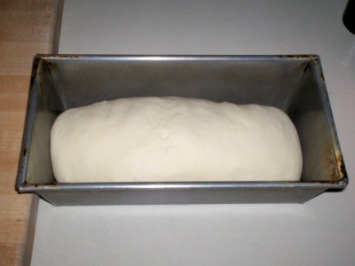 After a short rest (6 minutes) the dough was moulded and placed in a greased 10" x 5" x 3" oversize loaf pan.