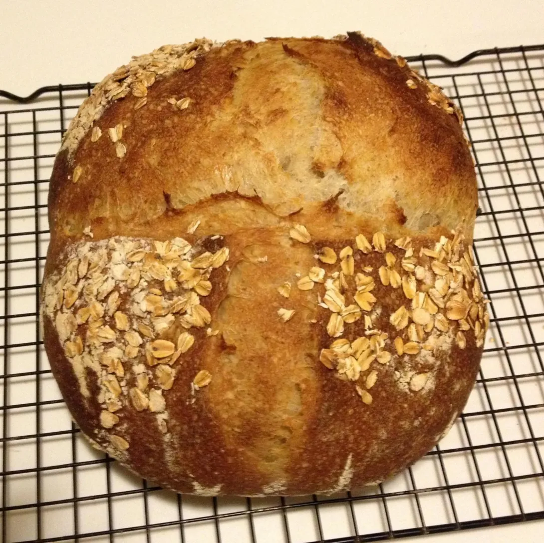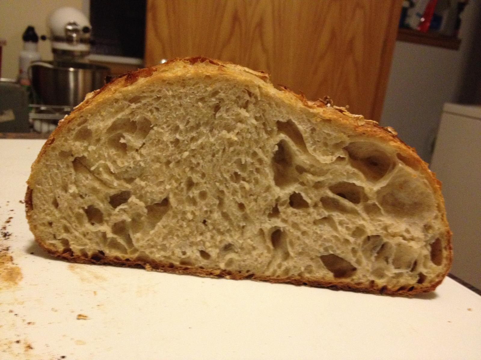 25 hours of work was destroyed when a stray spray of water came into contact with my oven light, causing it to explode and garnish my loaf with shards of glass. Being a true nerd, I continued baking to see how it would turn out.