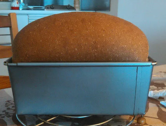 65% bread flour, 35% whole wheat flour, 60% water, 8% sunflower oil, 8% molasses, 2% fresh yeast, 2% salt and 1,5% roasted rye malt flour. This time I made before a sponge with 1/3 of the flours and all the yeast.