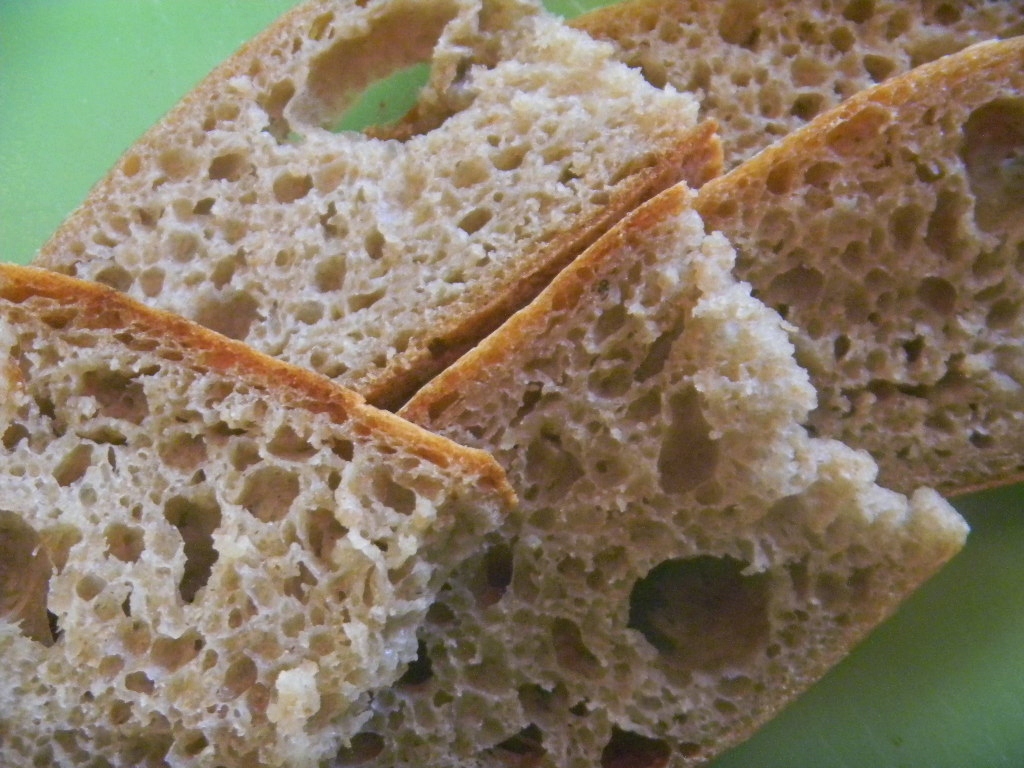 This one baked up nicely brown with some decent spring and bloom like last time but more hole grains means two things smaller holes and smaller blisters – its just a fundamental law of bread. This bread was nicely open anyway, with a soft moist and glossy crumb. The taste was the best yet for a sprouted grain bread and one of the best tasting breads we have eaten - ever - and that is saying something!