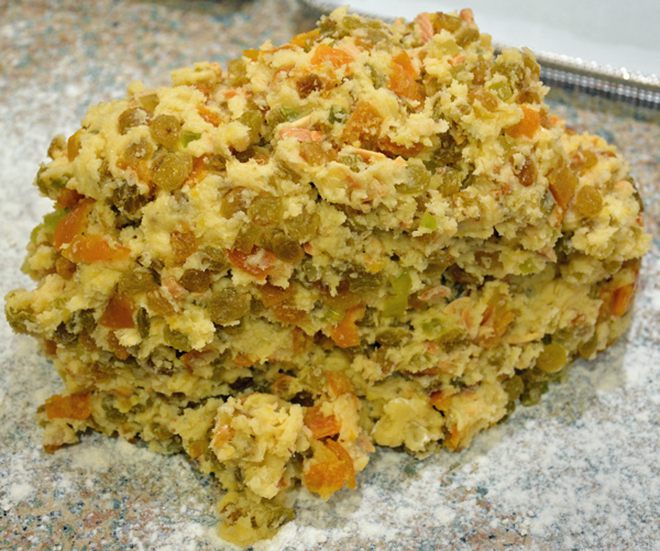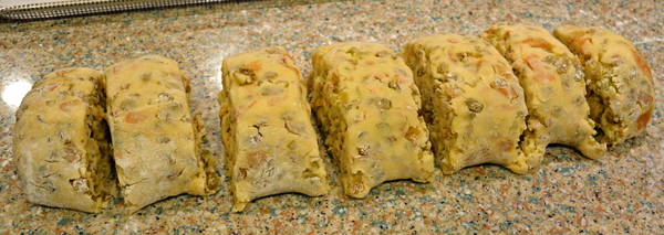This year’s version was made with store-bought citron (greener in color), and lightly toasted slivered almonds in place of the pine nuts.