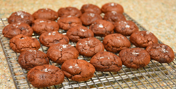 These Chocolate Salted Rye cookies just out of the oven... although hubby has renamed these cookies "Waste of Electricity Cookies" as he likes the dough better, unbaked :^)