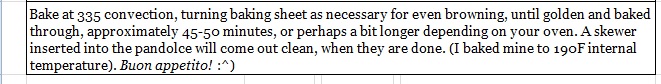 This recipe notes to soak the raisins in Marsala. We did that in class for one of the breads we made and the raisins were so delicious! I will plan ahead and give the raisins the special treatment the next time I make this Pandolce :^)