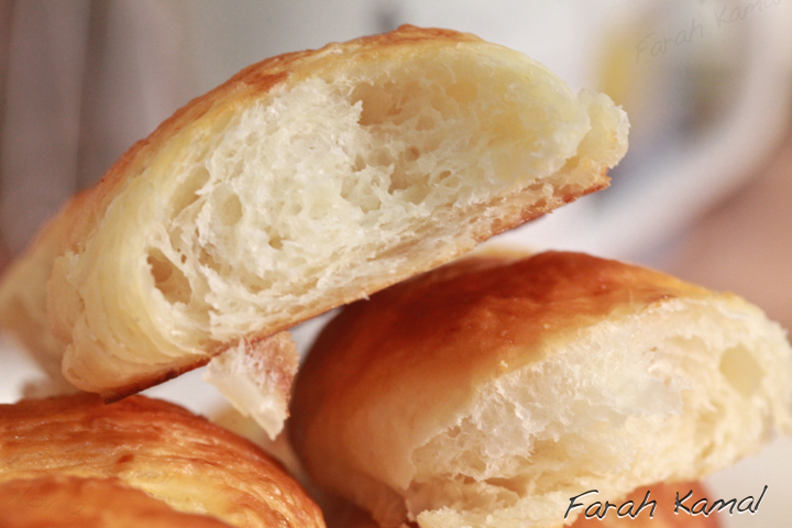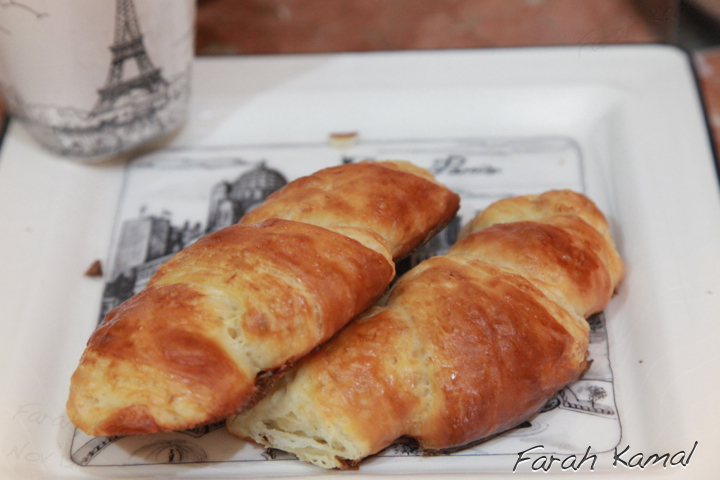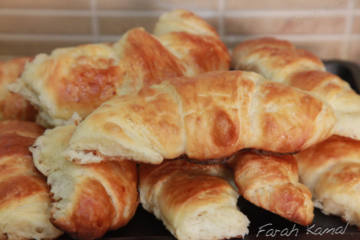 When i took up pastry classes, making croissant is a dream, and I learned the technique and recipe only to be disappointed that in my city where temperatures are always high, my Chef instructor told we can only bake croissant using crisco shortening. Yikes, I cannot do that knowing the health hazard of hydrogenated fats. So, gave up and beyond the required class assignment never thought of baking. So we reading the BBA by Reinhart, and the so called winters here the temperature dropped to 20 Celcius, and Kitchen is cooler, so I followed that awesome recipe and and since past one week baked like 8 dozen of these flaky, light buttery delights called Croissant.Of course that was for friends and family and some I sold.