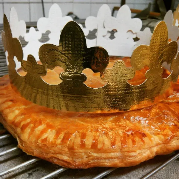 The shape is like a pithivier. This time I made the classical frangipane with some drops of rhum and almond essence. You know you can fill the pithivier with any flavour you want, sweet or salty. Galette des rois contains a small plastic figure inside the frangipane (a surprise for the kids).