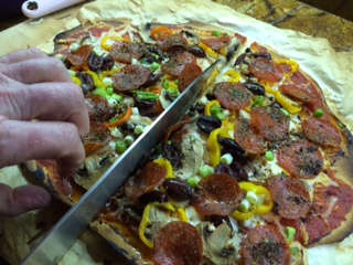 My niece loves banana bread, so I made some with chocolate and walnuts...gluten free. She loves pizza, too, so I made her a sourdough cheese pizza and one with pepperoni, onion, olives and mushrooms for the rest of us.