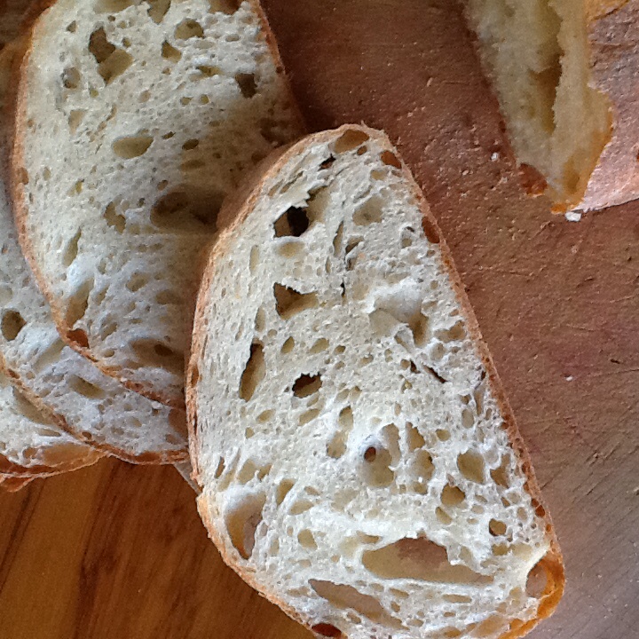 Crumb shot - this blew me away as I haven't achieved so many random holes before (I have made this lots as small boule at the recipe's 66% hydration)