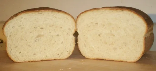 This loaf was baked in a 12” x 5½” x 2½” hearth bread pan. The formula is essentially the same as for White Bread, except that the shortening was omitted and 20% of the dough was replaced with the following sour: