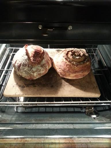 So I found myself at Bed Bath and Beyond the other day, searching for a gift for a friend. (As a sidenote: That store is overwhelming and slightly disconcerting.) Anyway, I fixated on one particular huge, inexpensive turkey roaster. A large, curved metal object with a handle! I've been using combo cookers and dutch ovens for all of my breads (and I've been intrigued by the lava rock cast iron pan approach), but I couldn't help but ponder how this metal dome could work when placed over a baking stone.