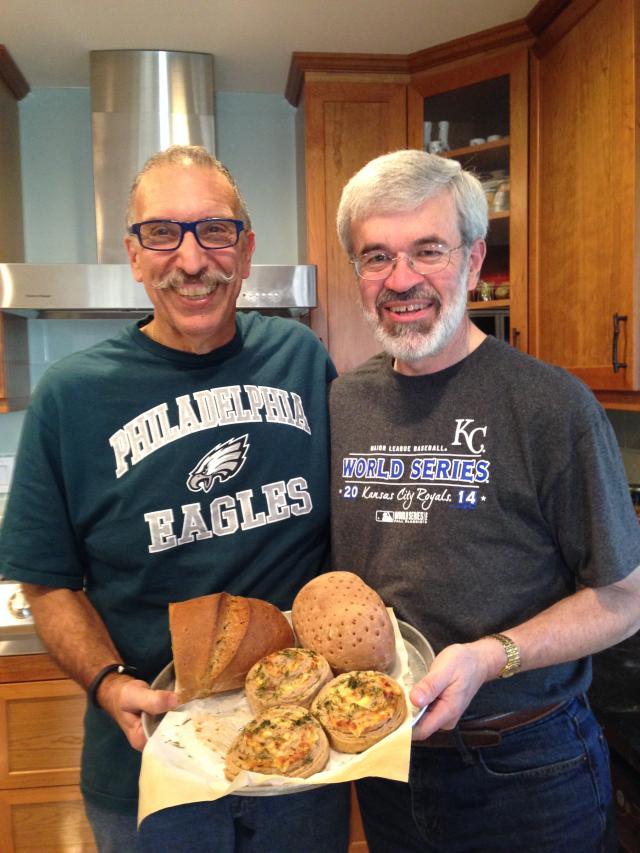And who wouldn't smile, after such gracious treatment by such an affable host? That's Stan on the left and some of each of the breads we baked on the tray: