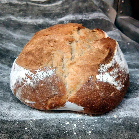 70% organic bread flour, 20% organic stoneground whole wheat flour, 10% organic corn flour, 78% water and 2,1% salt and 1,1% fresh yeast.