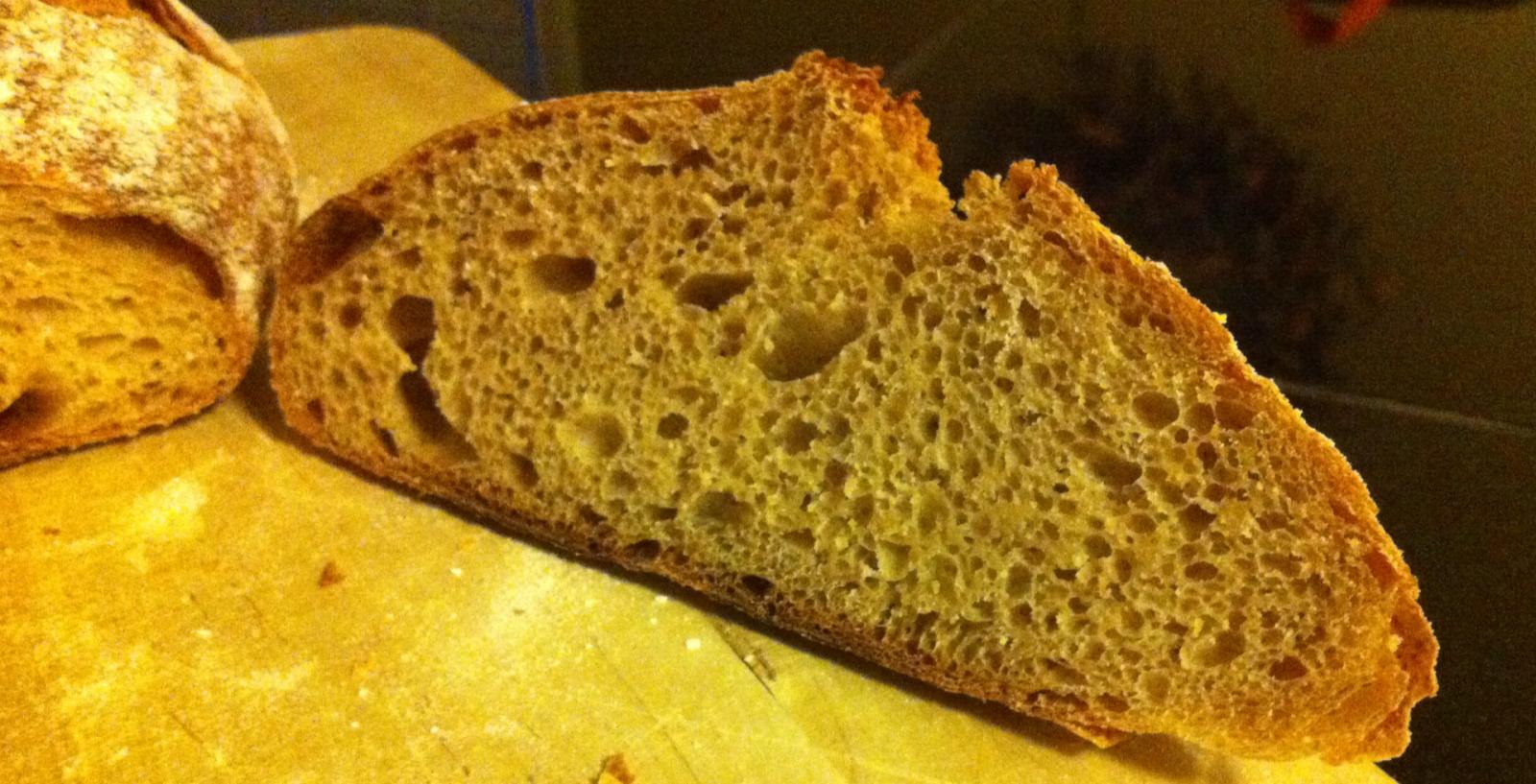 I had a piece, the crumb is moist and tender. It's also very tasty. I only regret not cooking the entire batch of dough in the DO! Next time!