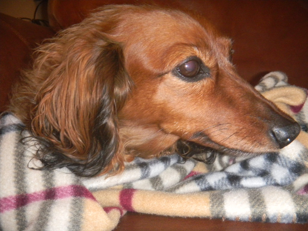 hates the snow and today, when it was 65 F here - very cold - she was all cuddled up in a blanket frozen near death.