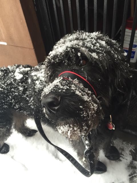 Here's my 80lb assistant, Barney. Only time to get a photo is when he has snow on him, normally he is just a black, dog-shaped hole in the scene.