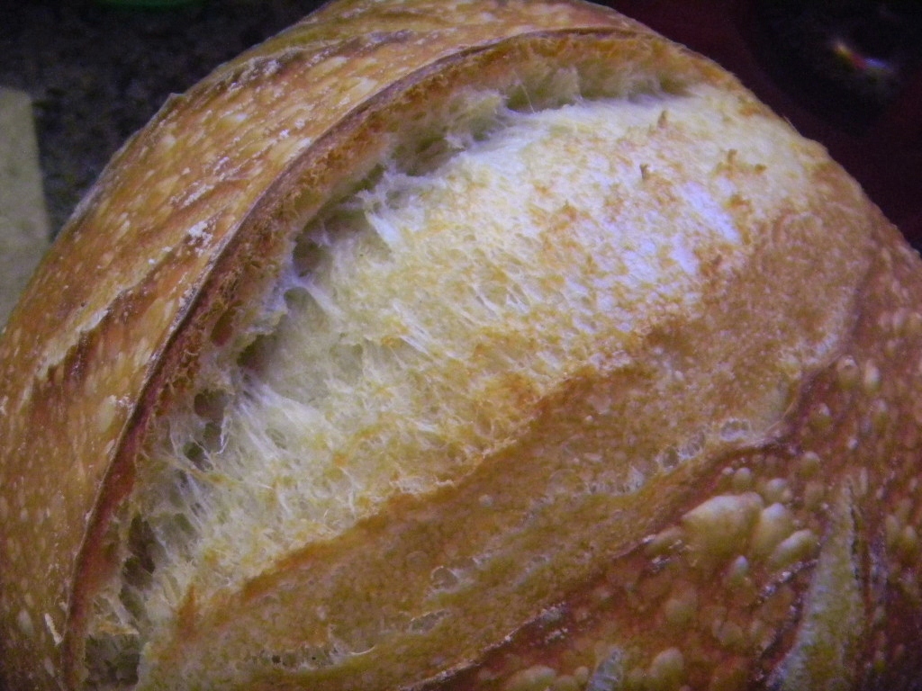 YW Primer to begin your YW journey.  It is just another natural culture that has no sour component.  Whote breads have larger blisters, YW seems to promote blisters, as does Mega Steam, DO's, long cold proofs and baking the bread while it is still cold from the fridge.  It can be hit or miss though but I always get these blisters on Whitish YW bread with long cold proofs and Mega Steam.  Hard to look better than this bread on the outside.  Lucy says it is picture perfect!