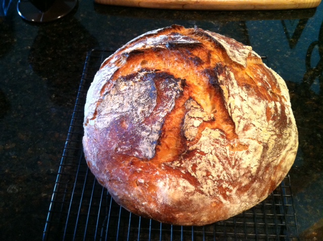 Anyway, here is what came out of the DO yesterday from that poolish AP bake, just the one boule on this bake. We did apply more restraint on the flouring of the banneton, rice flour only, but still maybe a tad too much. My early take on the DO experience is that it seems almost like shooting fish in a barrel...
