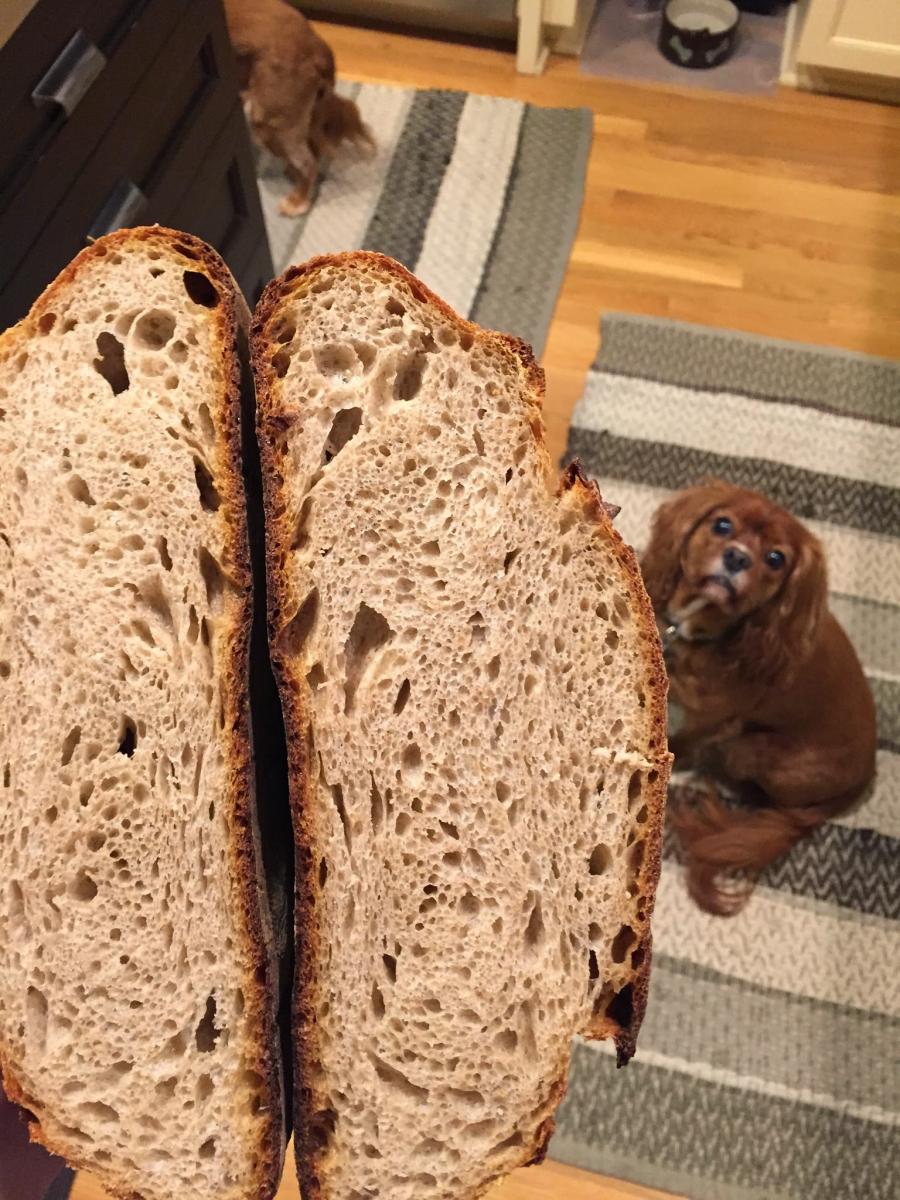 One further note, I baked these loafs free form on my baking steel. It produces really great oven spring (and I was heating it up for pizza later, so it was efficient). One thing I have to watch, though, is over cooking the bottom of the loaves – they got a bit darker than I might normally like, which I suppose is because of how efficient steel conducts heat, but was curious if others had a similar experience? Could be as easy as inserting something in between halfway through the bake, perhaps…